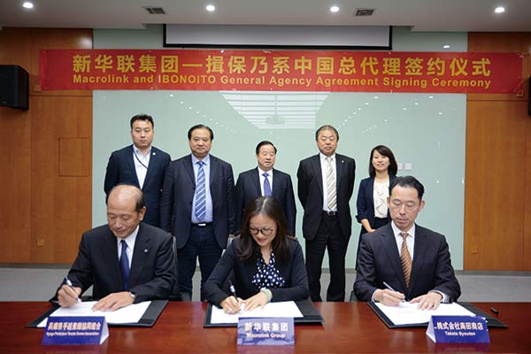 3月27日,集團與日本兵庫縣手延素面協(xié)同組合、高田商店株式會社簽訂代理協(xié)議,正式成為揖保乃系(手延面)中國大陸地區(qū)總代理商。揖保乃系(手延面)是日本第一面條品牌,有130年的發(fā)展歷史。集團董事局主席兼總裁傅軍、高級副總裁兼酒業(yè)與食品事業(yè)部總裁馮建軍、貿易部總監(jiān)胡暉等出席簽約儀式。