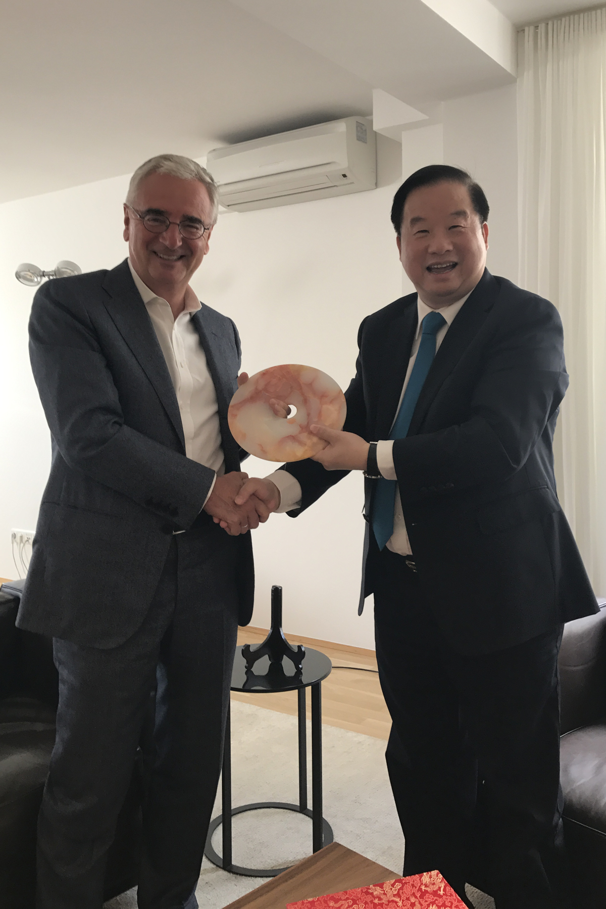 9月25日,德意志銀行主席保羅·阿赫萊特納在德國(guó)慕尼黑會(huì)見(jiàn)新華聯(lián)集團(tuán)董事局主席兼總裁傅軍。雙方就加強(qiáng)新華聯(lián)與德意志銀行的合作進(jìn)行了深入交流與探討。集團(tuán)國(guó)際發(fā)展部總監(jiān)楊云敏參加會(huì)見(jiàn)。