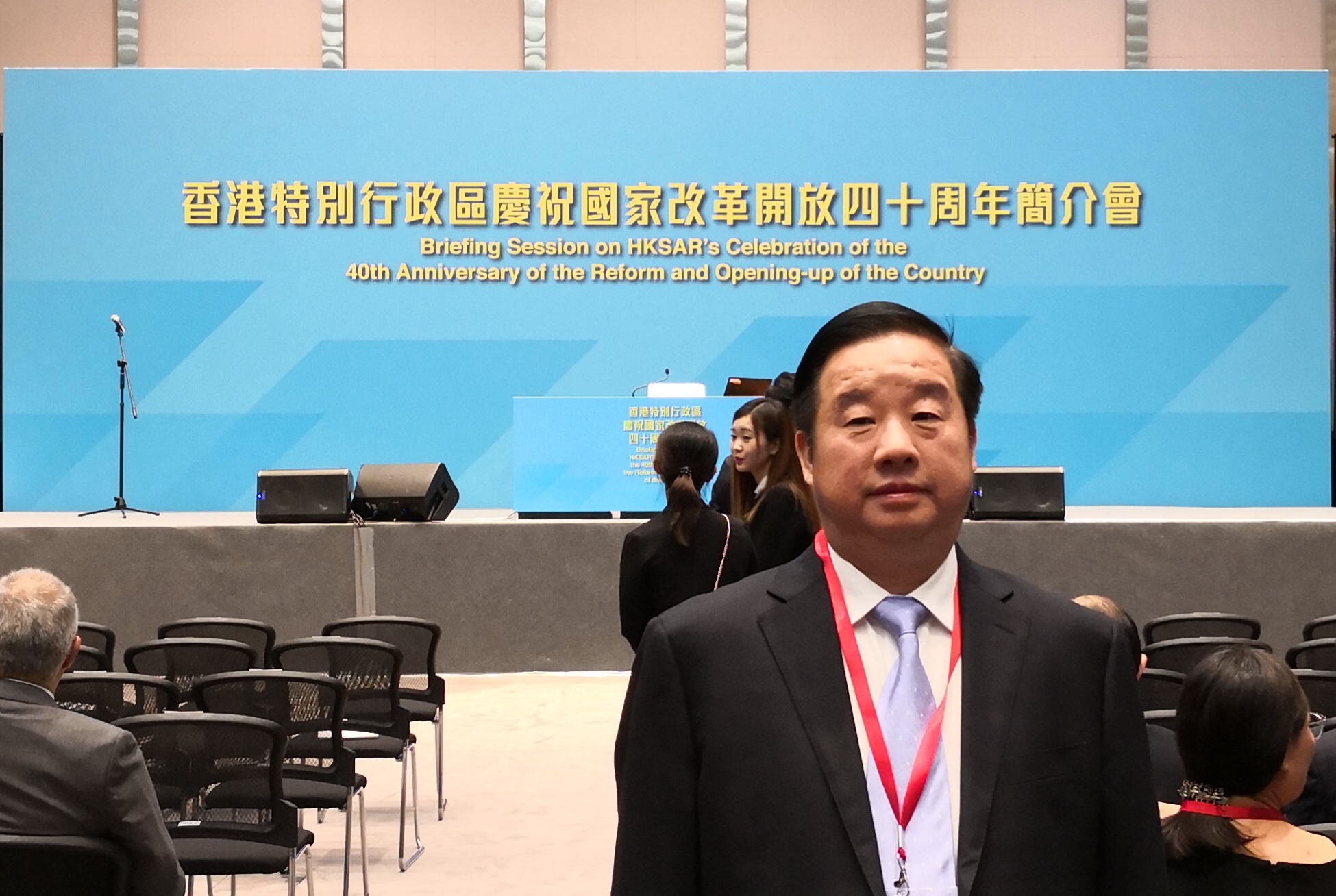 5月29日,香港特區(qū)政府在添馬道總部大廈舉行慶祝改革開(kāi)放四十周年簡(jiǎn)介會(huì)。新華聯(lián)集團(tuán)總裁傅軍應(yīng)邀出席本次會(huì)議。