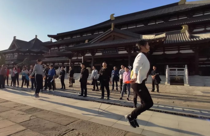 在湖湘名人館前,省工商聯(lián)工會(huì)會(huì)員們進(jìn)行了社會(huì)主義核心價(jià)值觀知識(shí)搶答賽。他們搶答踴躍,優(yōu)勝者優(yōu)先進(jìn)入飛行影院體驗(yàn)。跳繩和拔河兩項(xiàng)比賽則同時(shí)進(jìn)行,現(xiàn)場(chǎng)一次次響起熱烈的掌聲和歡呼聲,將活動(dòng)不斷推向新的高潮。