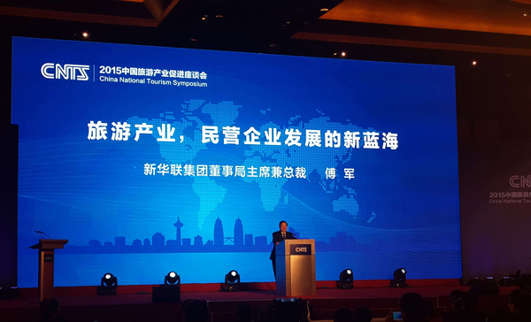 5月15日,2015年中國旅游產(chǎn)業(yè)促進(jìn)座談會(huì)在北京國貿(mào)大酒店召開。新華聯(lián)集團(tuán)董事局主席兼總裁傅軍應(yīng)邀出席大會(huì)并發(fā)表主題演講。